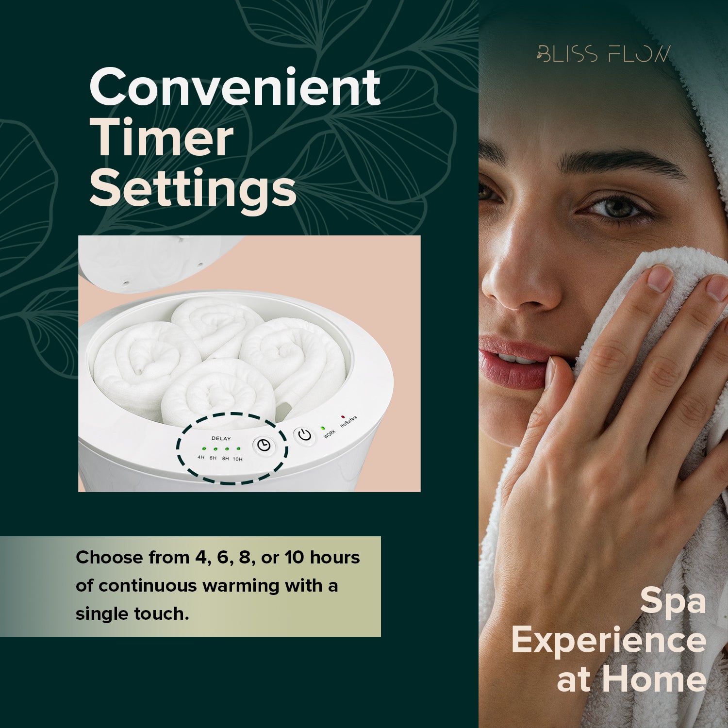 With 400W rapid heating, your towels reach soothing warmth in just 10 minutes, while the bucket’s even heat distribution ensures every inch is cozy. Choose between 4, 6, 8, or 10-hour timer settings, or enjoy a single 60-minute cycle with automatic shut-off for added safety and energy efficiency.